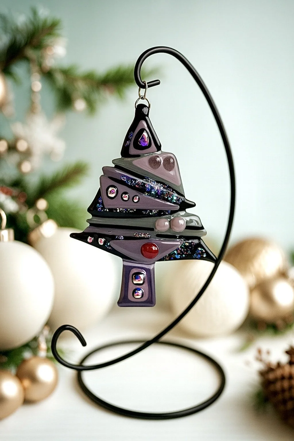 Fused Glass Christmas tree “Sugar Plum” with stand